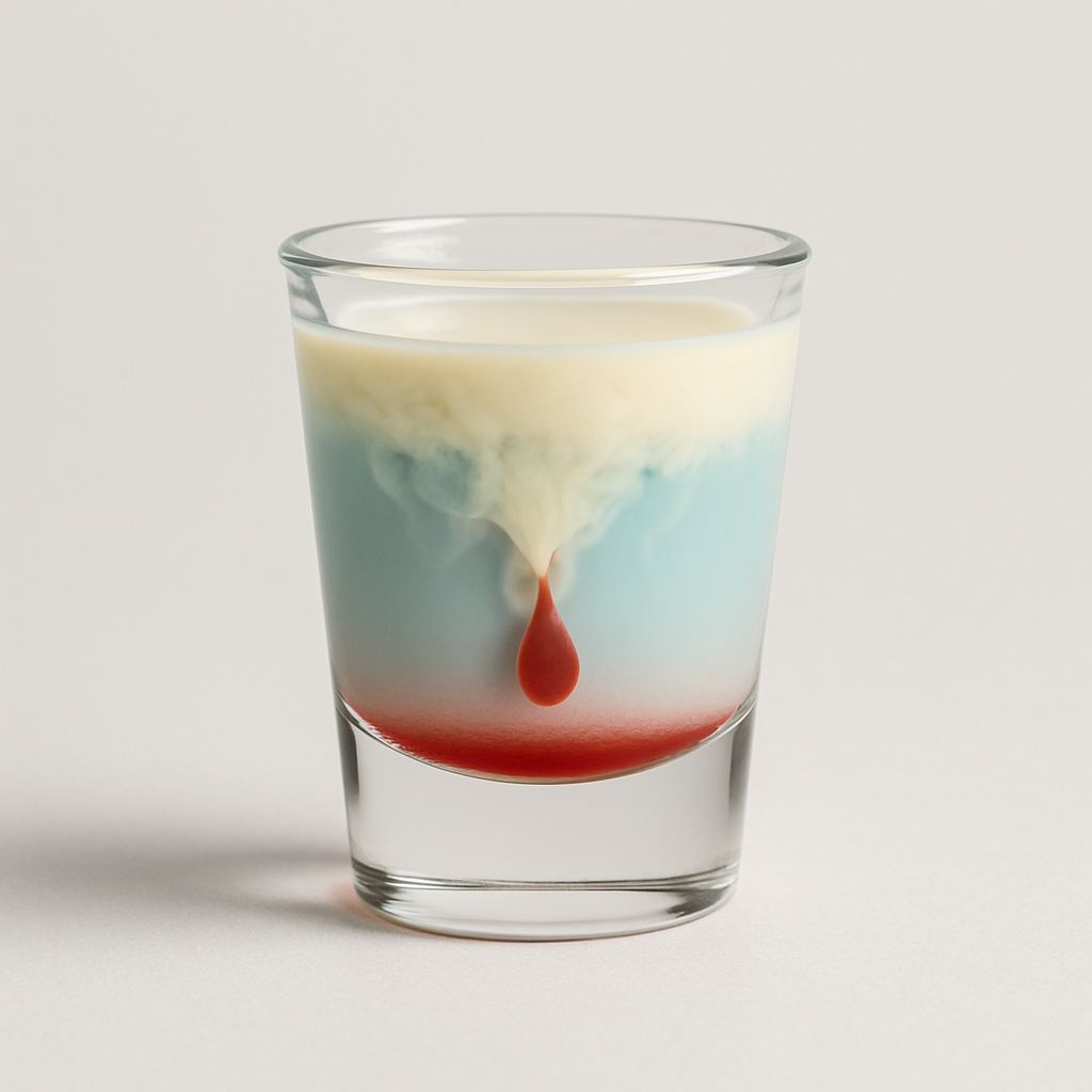 A visually striking layered shot that looks like a brain hemorrhage. Peach schnapps is topped with Irish cream, blue curaçao, and grenadine to create a ghoulish effect.