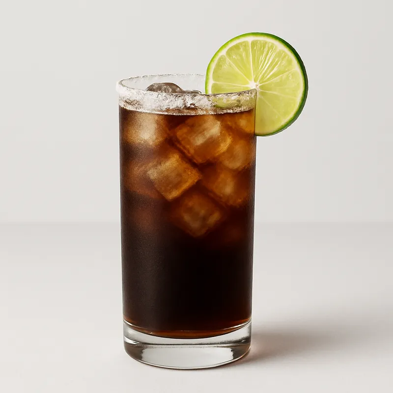 A classic Mexican highball of tequila, Mexican cola, and fresh lime juice served in a salt-rimmed glass.