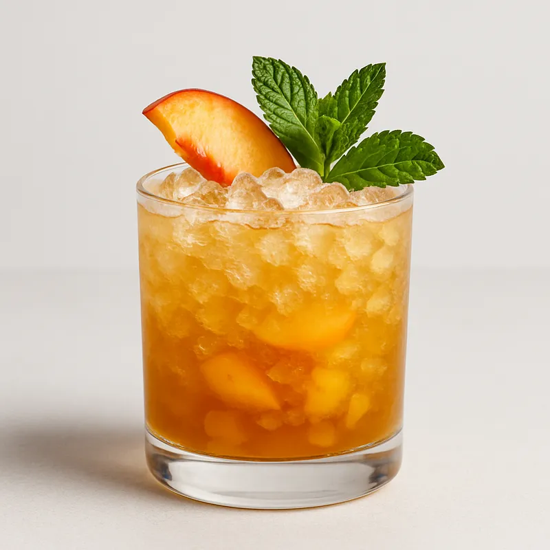 - 4Garnish with a mint sprig and peach slice.