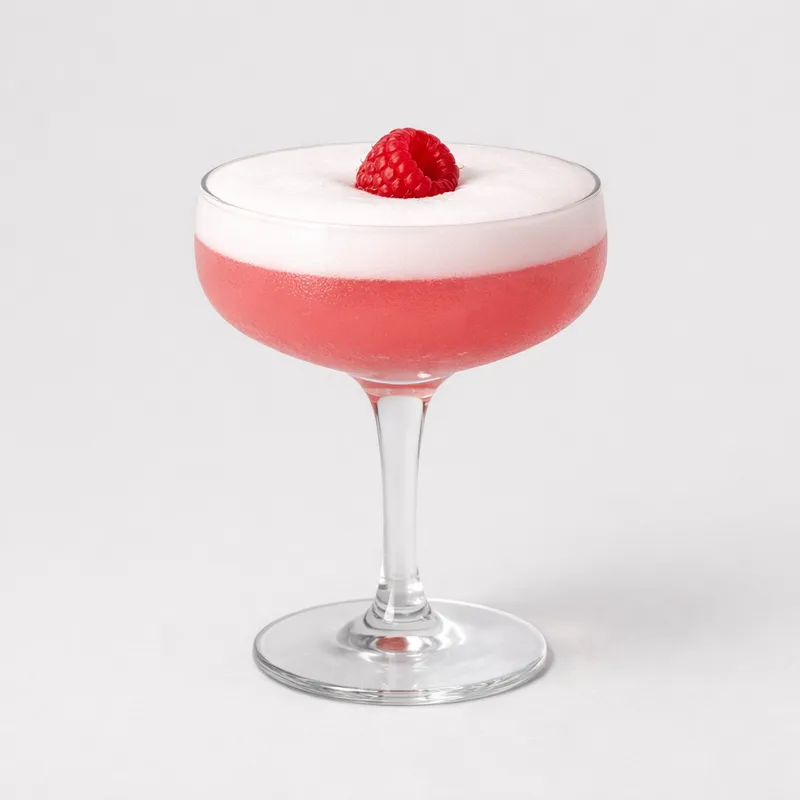 A delicate gin sour with raspberry syrup and egg white — a pink, frothy, and elegant classic.