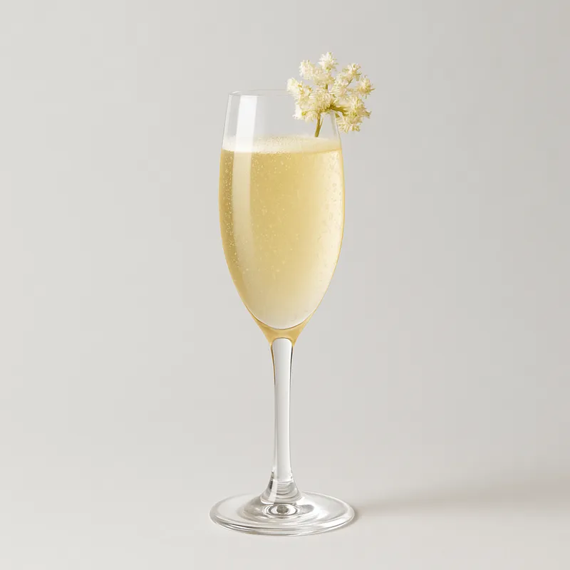 A light and floral cocktail made with elderflower liqueur, gin, cucumber, and prosecco.